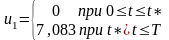 Получить программу оптимального управления, когда до некоторого момента t1 управление отсутствует u*=0, а начиная с t=t1, управление равно своему максимальному значению u*=umax, что соответствует минимальному расходу топлива.