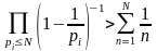 розходиться. Ця пропозиція дає деяку характеристику росту простих чисел. Підкреслимо, що воно набагато сильніше твердження про гармонійний ряд, тому що тут мова йде лише про частину його членів, тим більше що в натуральному ряді є як завгодно довгі проміжки без простих чисел, наприклад: