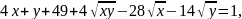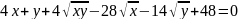 , то в (1) невідомий корінь може набувати цілі значення 0, 1, 4, 9, 16, а в (2) – лише цілі значення 0, 1, 4, 9. Відповідні їм значення такі: 64, 36, 16, 4, 0; 36, 16, 4, 0. Отже дане рівняння має 9 розв’язків в цілих числах.
