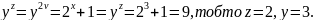 . Очевидно, що непарних значеннях z дане рівняння не має розв’язків , при парних значеннях z рівняння зводиться до вигляду:
