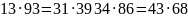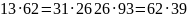 де , , , – цілі числа, менші 10. Для того щоб знайти розв’язки складаємо із 9 цифр всі пари з рівними добутками: