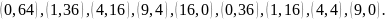 Відповідь: (0, 0), (0, 1), (1, 0), (1, 2), (2, 1), (2, 2).