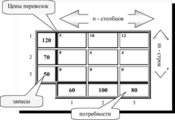 - цена перевозки единицы продукции по коммуникациям (i,j)