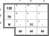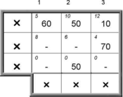 Получим новую текущую таблицу, в которую не входят заполненные и запрещенные клетки. Если таблица не пуста, переходим к шагу 1. (При исчерпании таблицы - конец).