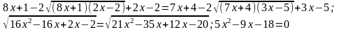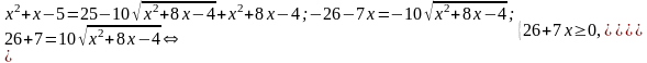 (4), що також є наслідком рівняння (1). Звівши рівняння (4) у квадрат і вирішивши отримане рівняння, потрібне виконати перевірку знайдених корінь, тобто перевірити, чи є його коріння коріннями рівняння (1).