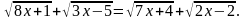 Рішення. Якщо обидві частини вихідного рівняння піднести до квадрата, то вийде досить складне рівняння. Надійдемо по-іншому: перетворимо рівняння до виду: