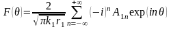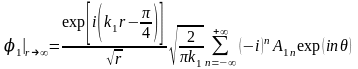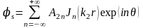 Опуская первый множитель, характеризующий распространение ненаправленной цилиндрической волны, и учитывая, что амплитуда падающей волны – единичная, получим выражение для нормированной амплитуды рассеянной волны: