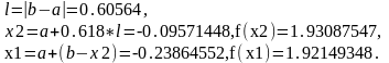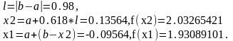 Так как f (x1) < f (x2), то b: =x2, a оставляем прежним. Тогда для следующей итерации: