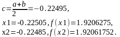 Шаг 1. Найти х1 и х2 по формулам (5). Вычислить f (x1) и f (x2).