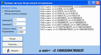 2.1.3 Практическое применение прямых методов одномерной безусловной оптимизации