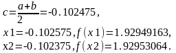 , то перейти к отрезку [а; x2], положив b = x2, иначе - к отрезку [x1; b], положив а = x1.