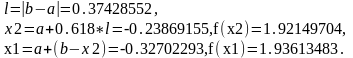 4. В конце вычислений по методу золотого сечения в качестве приближенного значения х* можно взять середину последнего из полученных отрезков