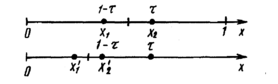Рассмотрим сначала отрезок [0; 1] и для определенности предположим, что при его уменьшении исключается правая часть этого отрезка. Пусть х2 = , тогда симметрично расположенная точка х1 = 1- (рисунок 6).