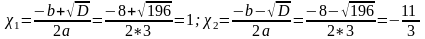 Так как D > 0, то данное квадратное уравнение имеет два корня. Эти корни находятся по формулам: