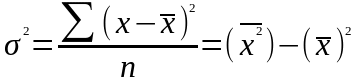 т.е. дисперсия равна разности средней из квадратов и квадрата средней. Этой формулой пользуются машинной обработке исходных данных.
