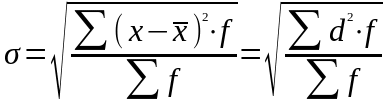 Среднее квадратическое отклонение представляет собой среднюю, исчисленную на основе квадратов отклонений отдельных значений варьирующего признака от их среднего значения.
