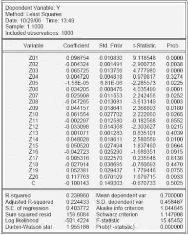 Построим регрессию Y на факторы Z1-Z20 по методу линейной регрессии (табл.14.)