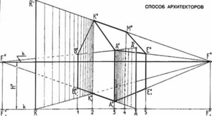 Рассмотрим еще один пример построения перспективы способом архитекторов (рис. 4).
