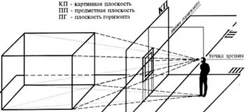 Передняя стенка комнаты совмещена с картинной плоскостью.