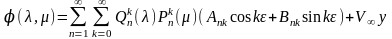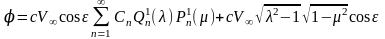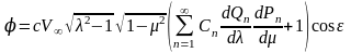 Комбинируя эти функции так, чтобы выражение потенциала скоростей возмущенного движения было ограниченным при , получим общее выражение потенциала скоростей