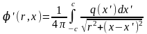 Предположим для определенности, что на отрезке (– с, + с) оси Ох задано непрерывное распределение источников (стоков) интенсивности q(х). Тогда потенциал ' возмущенного движения, созданного этой системой особенностей, будет равен (знак минус введем в определение интенсивности q)