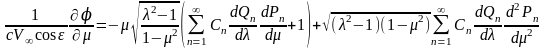 Сравнивая это граничное условие с приближенным граничным условием продольного обтекания (19), видим, что между искомыми коэффициентами An и Cn существует простое соотношение