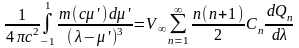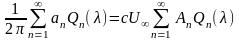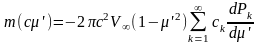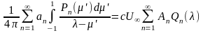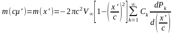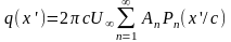 Тогда, сравнивая между собой вне отрезка (– с < х' < с) выражения потенциалов возмущений (24) и (25) с соответственными выражениями тех же потенциалов и приняв во внимание, что Рn(1) = 1, получим следующие два равенства: