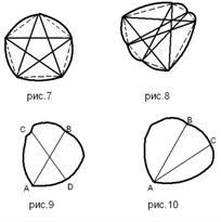 Всякие два диаметра фигуры постоянной ширины всегда пересекаются (либо внутри фигуры, либо на ее границе, рис.8, 9). При этом, если два диаметра АВ и АС имеют общую граничную точку А, то дуга ВС радиуса d с центром в точке А целиком лежит на границе фигуры (рис.10).