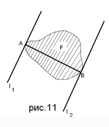 Наконец, отметим, что если F — фигура постоянной ширины и АВ — ее диаметр, то прямые l1 и l2, проходящие через точки А и В и перпендикулярные к отрезку АВ, являются опорными прямыми фигуры F (рис.11).