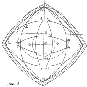. На фигурах 3 – 4 – 5, 7 – 8 - 9, 11 – 12 – 1 (Рис.16) центр движется по дугам с радиусом именно R/