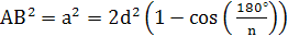 (n-число сторон), т.к. треугольник равнобедренный, ОН –биссектриса угла АОD.