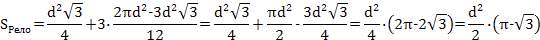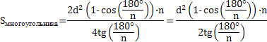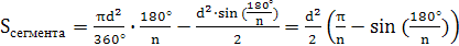 Площадь фигуры, в которую вписан правильный многоугольник состоит из площади многоугольника и суммы площадей равных сегментов. Площадь сегмента равна