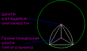 Очень важной является траектория движения геометрического центра треугольника. Если обозначить длину стороны треугольника через R, то расстояние от вершины до геометрического центра будет равно R/