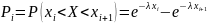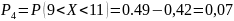 3. Найдем вероятности попадания X в каждый из интервалов по формуле: