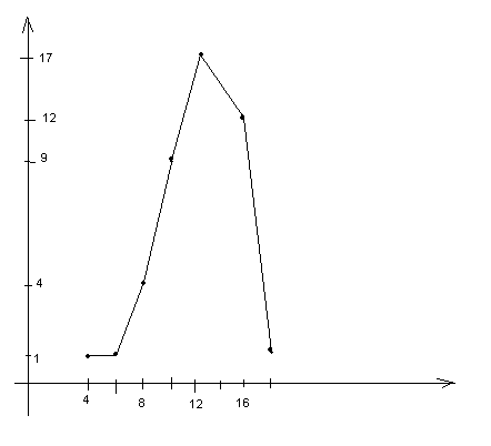 5. Сравним эмпирические и теоретические частоты с помощью критерия Пирсона. Для этого составим расчетную таблицу, причем объединим малочисленные частоты (4+6=10), (16+18=34) и соответствующие им теоретические частоты (16,17+5,88=22,05), (1,96+1,96=3,92)
