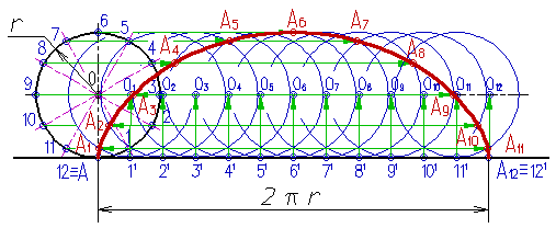 Полученные точки А1, А2, ...А12 принадлежат циклоиде.