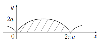 Решение. Из уравнения кривой dx = a(1−cos t) dt. Первая арка циклоиды соответствует изменению параметра t от 0 до 2π. Следовательно,