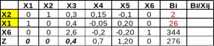 x1=26, x2=2, x3=0, x4=0, x5=0, x6=344, Z=276.