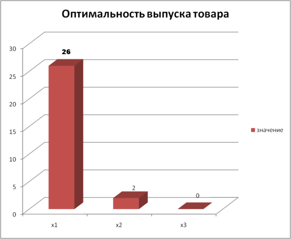 Оптимально производить Товар 1 – в количестве 26, Товар 2 – в количестве 2 и Товар 3 – в количестве 0.