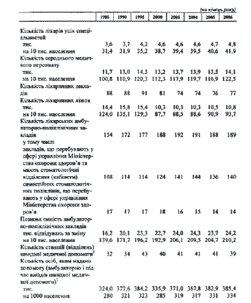 Таблиця 1. Основні показники охорони здоров`я