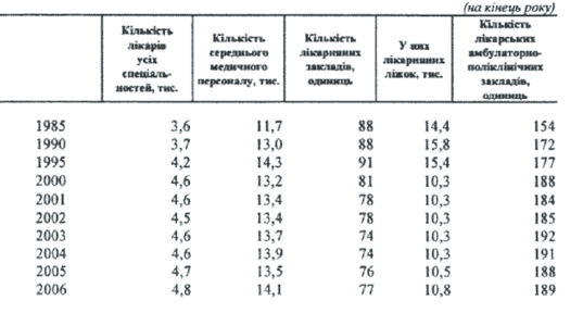 3. Показники засобів медичного обслуговування: кількість лікарів різних спеціальностей та молодшого медичного персоналу в розрахунку на 10 тис. осіб населення; місткість медичних установ (кількість лікарняних ліжок на 1000 осіб населення).