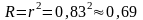 Обчислимо коефіцієнт детермінації, як коефіцієнт кореляції в квадраті: