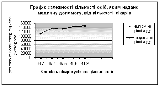 Графік №1. Графік залежності кількості осіб, яким надано допомогу, від кількості лікарів