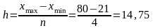 | 35,75-50,5 | 9 | 43,13 | 388,13 | -5,31 | 47,79 | 253,76 | 1859,77 | 16737,89 |