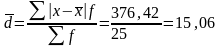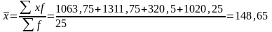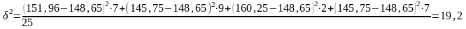 | 21-35,75 | 124-138,5 138,5-153 153-167,5 167,5-182 | 0 5 1 1 | 131,25 145,75 160,25 174,75 | 0 728,75 160,25 174,75 | -20,71 -6,21 8,29 22,79 | 0 193,09 68,65 519,19 |