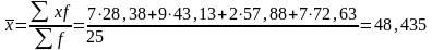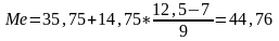 | 35,75-50,5) | 9 | 16 | 43,13 |
