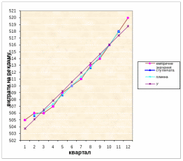 | Базовий | І квартал ІІ квартал ІІІ квартал IV квартал | 505 506 506 507 | 505,67 | 505,67 506,33 507,33 | -11 -9 -7 -5 | 121 81 49 25 | -5555 -4554 -3542 -2535 | 503,73 505,1 506,47 507,83 |