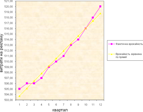 Графік6. Витрати на рекламу (фактичні та вирівняні ряди)