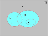 Подмножество – понятие части в теории множеств. Множество C является подмножеством множества B (рис. 1.1.1, обозначается CB) в случае, если каждый элемент множества C является также и элементом множества B. Например, множество всех чётных чисел является подмножеством множества всех целых чисел. Если C является подмножеством B, то B называется надмножеством C.