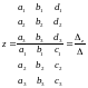 Решение системы трех линейных уравнений с тремя неизвестными можно выразить через определители: